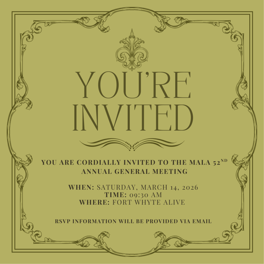 MALA is pleased to announce that our 52nd Annual General Meeting will be held at Fort Whyte Alive this year. Members, colleagues, and the public are invited to join us for a morning of association business, connection, and community. Date: Saturday, March 14, 2026 Location: Fort Whyte Alive Main Entrance: 1961 McCreary Road Secondary Entrance: 2505 McGillivray Boulevard Program Details: Doors Open & Registration: 09:30 am AGM Program Begins Promptly: 10:00 am Lunch will be provided More details, including registration information will be shared soon, and circulated via email. For further information please contact us at mala@mala.net Following the MALA AGM, families are warmly invited to join members in exploring Fort Whyte Alive’s games, and outdoor activities! This is both a great opportunity to explore offerings from Fort Whyte Alive, but to also connect professionally and socially. We look forward to gathering with our community in this unique and inspiring setting.